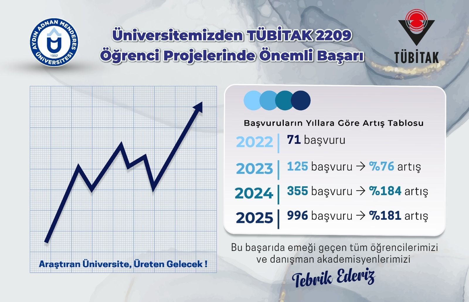 Interest and application performance of our students in the TÜBİTAK 2209 University Students Research Projects Support Program have increased significantly over the past four years, reaching a record level in 2025.